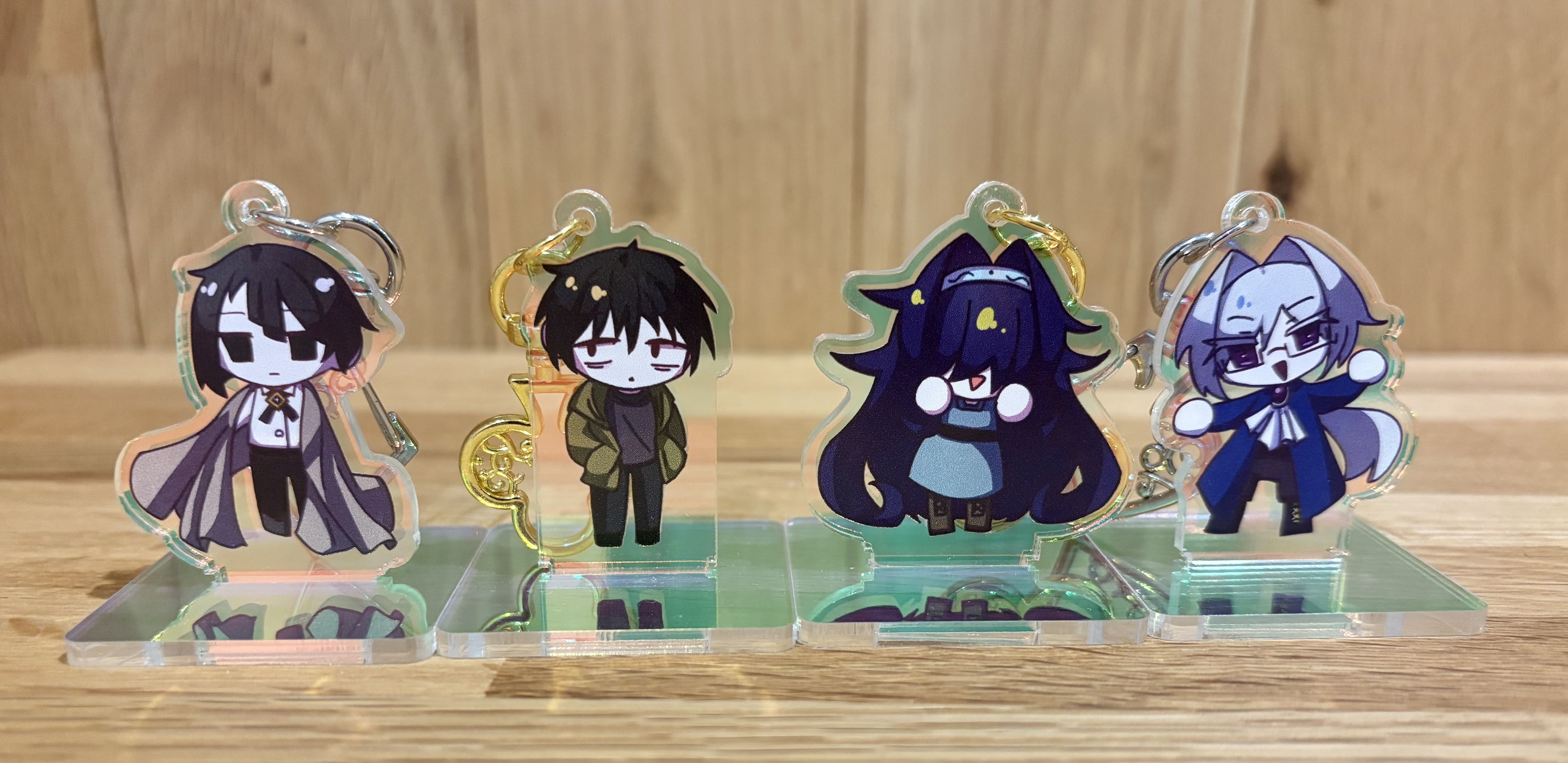 雑記 そういえばアクスタキーホルダーが届いた。 1周年の更新時に合わせて公開かな〜って感じ。 いや、自分が作ったアクスタを見る勇気が湧かず、未だに梱包材にくるまったままです。なんか……見るのがこわい! 2025/09/21